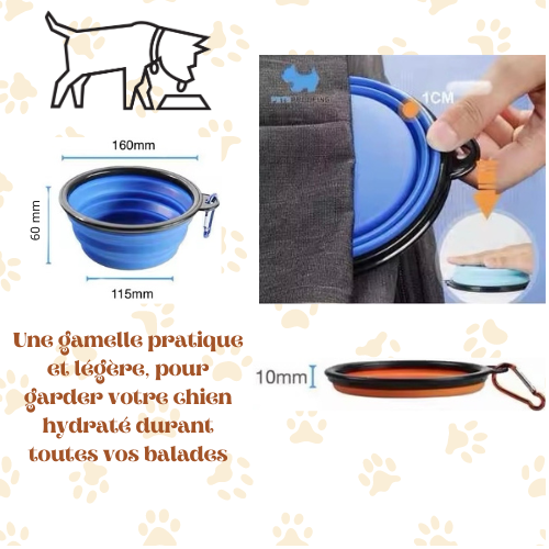 - Gamelle pliable : Pratique et légère, elle se plie pour faciliter le transport lors de vos sorties.