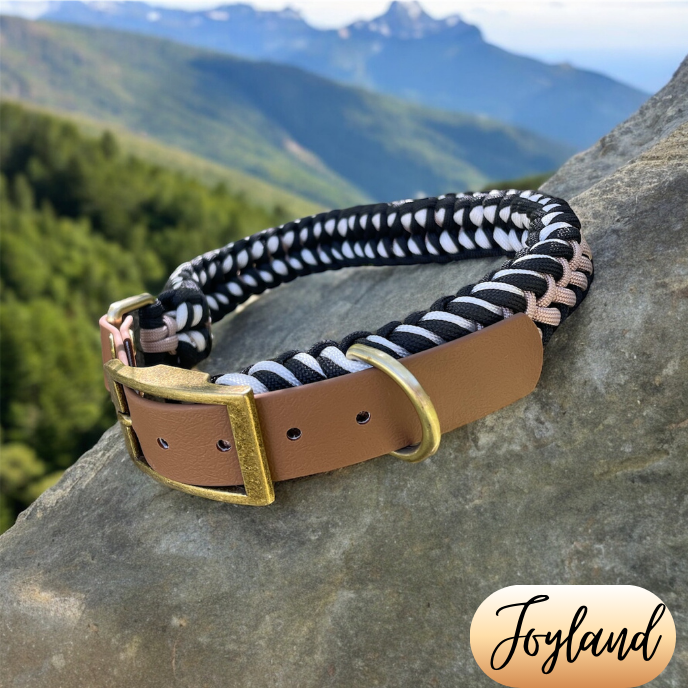 - Collier en paracorde : Élégant et résistant, il assure sécurité et style à votre chien.