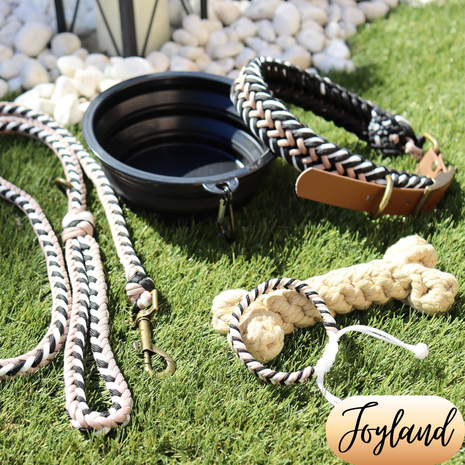 - Laisse assortie en paracorde : Solide et confortable, parfaite pour vos promenades.